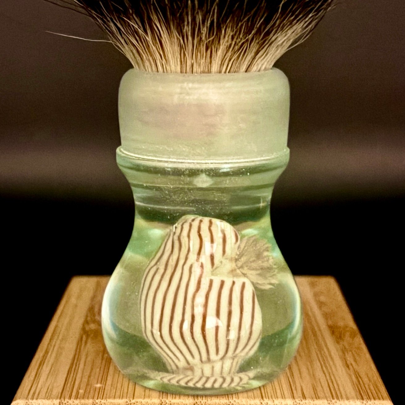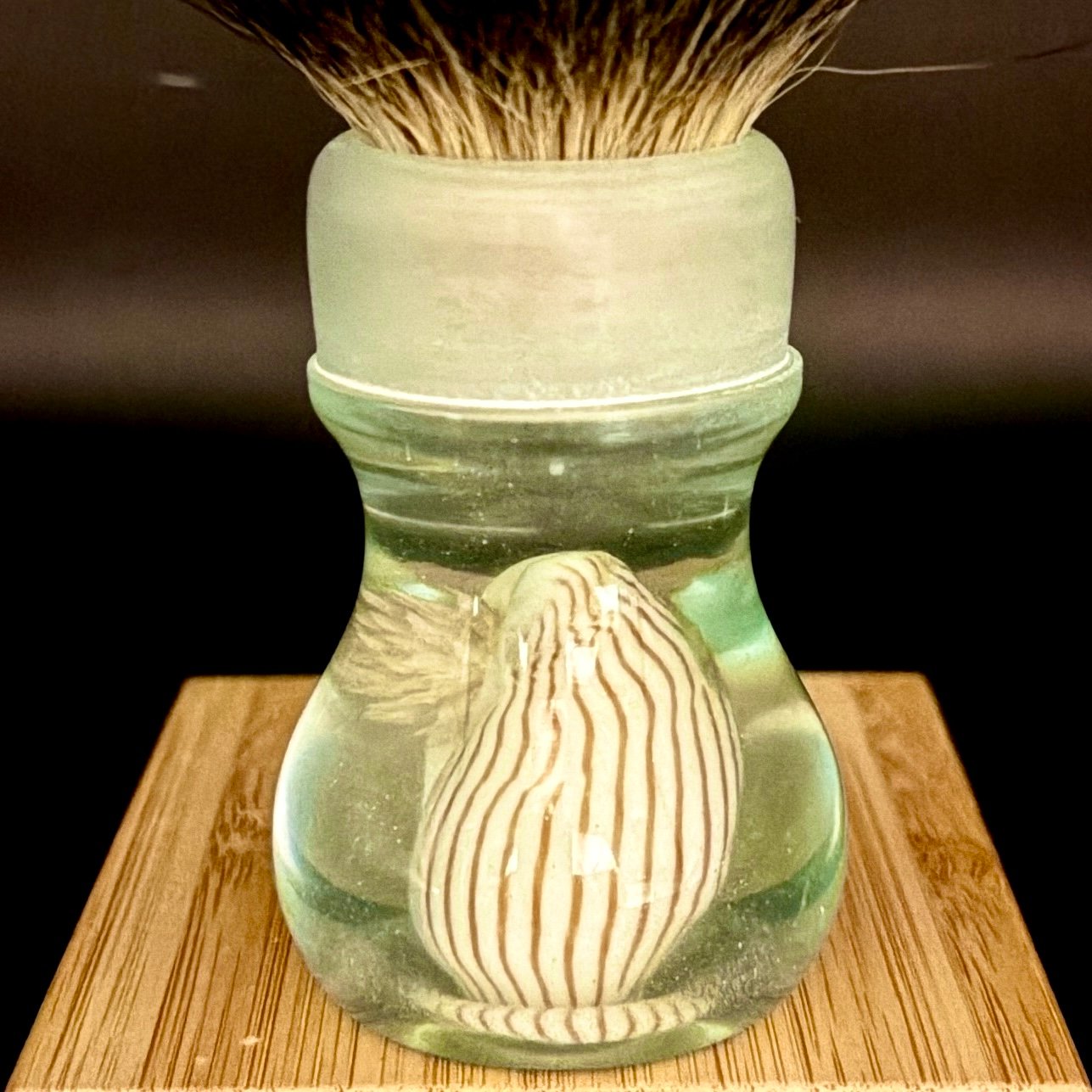 Each brush is individually composed and cast, with no moulds or mass production. The clear resin, layered with subtle green hues, evokes shallow coastal waters — shifting with light, depth, and movement. No two pieces can ever be the same.